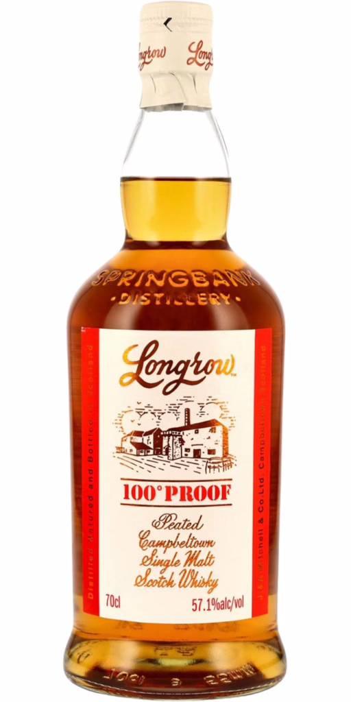 The Longrow 100° Proof 2025 Edition is a new addition to the Springbank distillery’s range, replacing the discontinued Longrow Red series. This is the first annual release bottled at cask strength (57.1% ABV). The whisky is approximately 6 years old, matured for 4 years in refill bourbon casks and then finished for 2 years in refill Pinot Noir casks. The first batch (Batch 25/01) is heavily peated and double-distilled, characteristic of Longrow’s style, and combines peat smoke with red wine influence. It is bottled without chill filtration and without added colour. The 2025 release can still be found, with prices going from €80 in Italy to close to double that in some other shops.